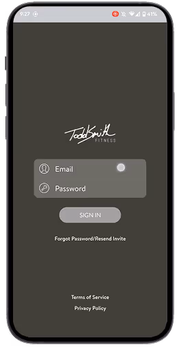Open the Todd Smith Fitness app and log in with the email and password you created from your intro email.