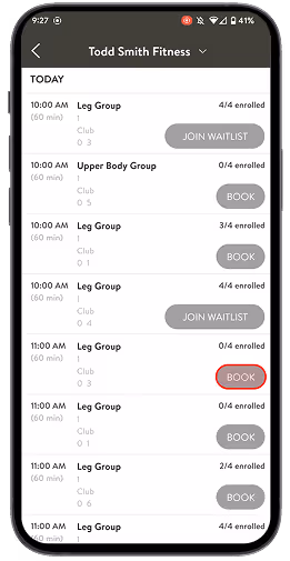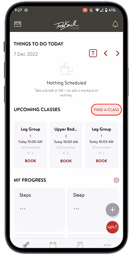 Tap Find a Class to see all class time and session group available that fits your schedule (must be at least 60 minutes in advance).