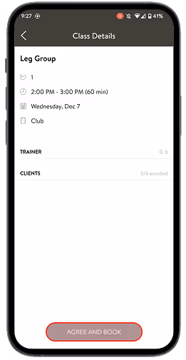 Make sure there’s an open client spot, then tap Agree & Book to confirm your workout.